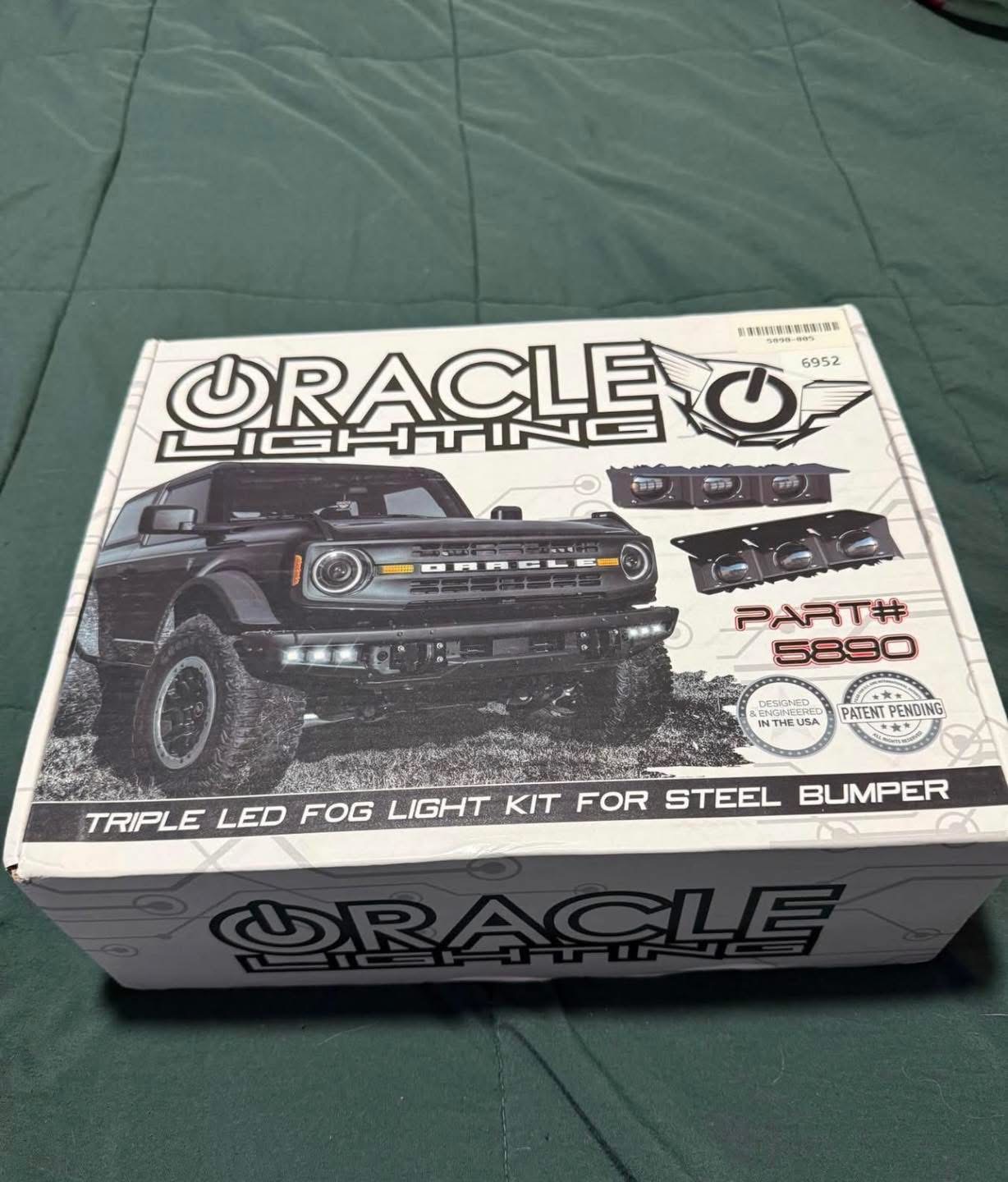 TRIPLE LED FOG LIGHT KIT FOR 2021–2025 FORD BRONCO STEEL MODULAR BUMPERS—BOLT-ON FITMENT WITH WIDE FOG-BEAM OPTICS, BLACKED-OUT OEM+ STYLING, AND IP68 DURABILITY FOR HARSH TRAIL AND WEATHER CONDITIONS.